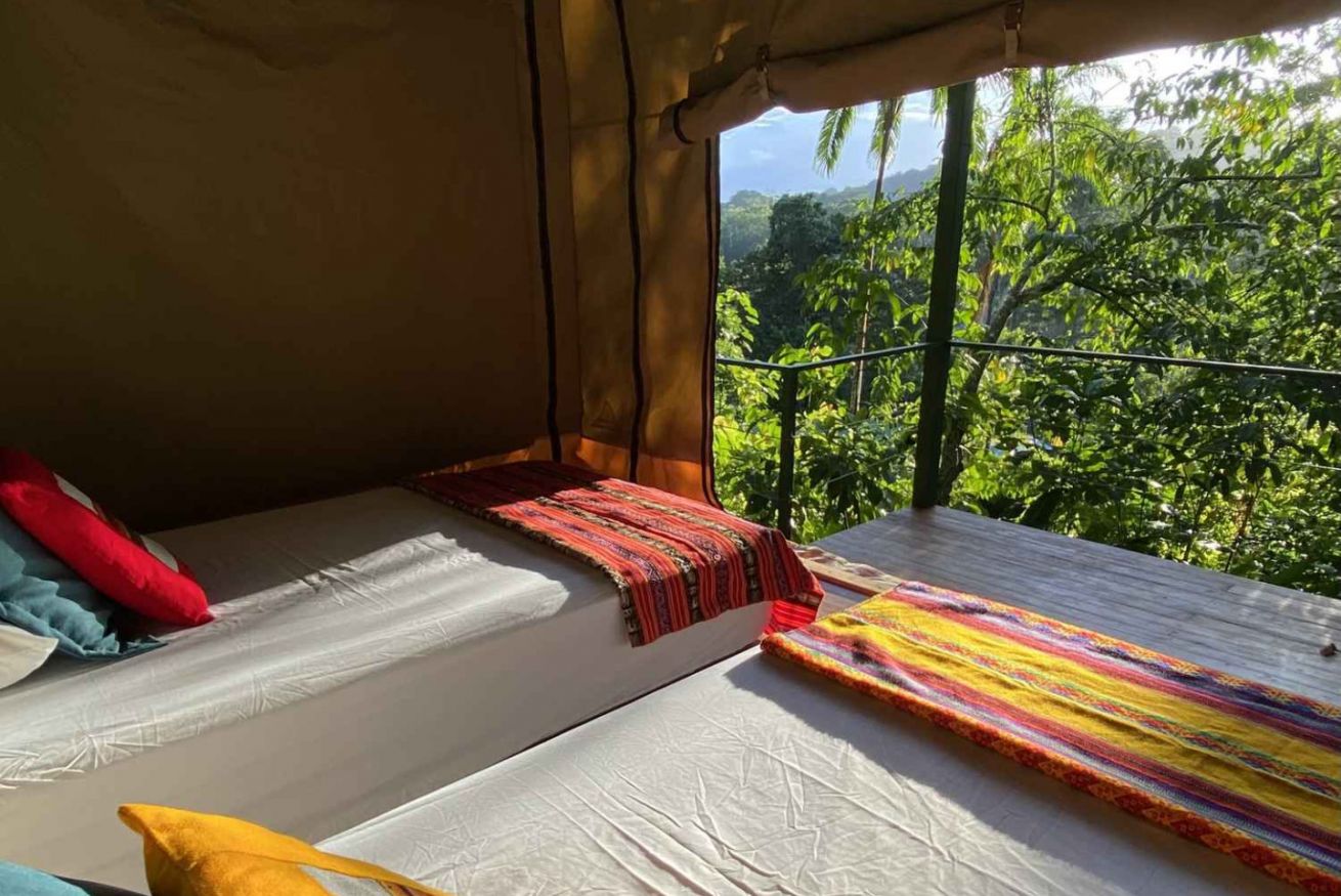 He sido informado por Colina Secreta Glamping que las mencionadas instalaciones se encuentran ubicadas en 3 hectáreas de selva primaria y secundaria, con importante desnivel en los senderos y donde pueden caer árboles y ramas, rodeadas de diferentes especies de animales selváticos peligrosos. Si sus aptitudes físicas están limitadas o sufre padecimientos o enfermedades cardiacas, respiratorias o de movilidad, hágalo saber al personal de recepción a su llegada lo antes posible a fin de que el Hotel pueda tomar las medidas oportunas que fuesen necesarias como asignarle una habitación de más fácil acceso.